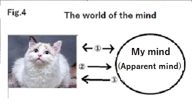 It can be said that the "apparent mind" has its origin in the "apparent acts". Details will be discussed in section (3) of (3-2). The reason why I use the term the “apparent mind" is because, as we have already discussed, the true meaning of the “world of the mind" represents the entire world before our eyes, including our own body, which is different from the "apparent mind".