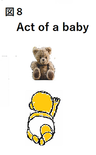 In common knowledge, there is a strong belief in the "unity of body and mind" and that the two cannot be separated. This is also reflected in the "apparent body" and "apparent mind", they share a strong sense of unity. This unity is thought to arise from the fact that both are created in the same psychological space through brain activity and are connected by "apparent acts". It is not only the “I” that is created in psychological space by brain activity. Everything seen before our eyes is copies of the material world and the physical body created by brain activity. The role of the copies is thought to be for the efficiency and simplification of information processing, as well as for the judgment, decision, and execution of acts. In fact, when we take acts in the “material world”, it is undoubtedly true that we are utilizing the information obtained from the “world before our eyes”, namely the “world of the mind”. Let's examine this point next. For example, if there is a puddle before your eyes, you would probably avoid it. Now, when asked, “Why can you avoid it?”, how would you respond? You would answer, “Isn't that obvious? If I see a puddle, it's because I don't want to get wet.” However, there is a problem with this answer. The world that you see right before your eyes is, as we have discussed many times, the apparent material world created by brain activity, that is, the world of the mind. The question is how the apparent acts in the apparent world relate to the movements of the physical body existing in the material world. Behind this avoidance behavior, there is knowledge about the water due to the superimposition system, and it can be said that there is control of the body through the synchronization system to put that knowledge into the act. It is important to note the fact that these factors enable the behavior of avoiding puddles. I think that memory holds the key to enabling these systems. You might say, “Isn't that obvious? It's because we have knowledge (memory) about water and we have the desire not to get wet.” However, I would like you to note that the issue being discussed here is about the relationship between the psychological phenomenon of not wanting to get wet and the physical phenomenon of avoiding a puddle. In other words, I am speculating that memory is what bridges the gap between psychological phenomena and physical phenomena. I don't know how the apparent world is created in the psychological space by brain activity, but there is no doubt that there is a causal relationship. There is a question, "Are psychological phenomena merely shadows of brain activity?". But I do not think that the brain would intentionally produce something unnecessary. This issue is important because the fact that “existing in the world right before our eyes is simultaneously recognition” has significant meaning, and it seems that memory is involved behind that. It is believed that the system where recognition and memory are related are formed through various experiences during the growth process. Let's consider a somewhat simplified case like the following. As shown in Figure 8, let's consider the situation where a baby, who still cannot crawl well, is reaching out the baby’s hand to grab a teddy bear before the baby’s eyes. In this case, we assume that the baby is not very accustomed to the way of moving the hands. If the direction of the apparent hand is misaligned with the stuffed animal, the desire to somehow reach the stuffed animal arises, leading to the will to correct the direction of the apparent hand. In response, the physical hand moves, and this result manifests as the movement of the apparent hand before the baby’s eyes. At this time, the acts which are memorized based on the recognition that “By applying force in this way, the apparent hand moves and can approach the object,” become successful experiences. Through the accumulation of these experiences, the way of applying force becomes established in memory, forming the synchronization system. On the other hand, the superimposition system leads to the acquisition of the meaning that the apparent hand before the baby’s eyes is a physical hand, and that establishes itself in memory. For the baby, what is recognized is not the actual scenes of the material world or the movement of the physical hand, but rather the plush toy seen before the baby and the movements of the apparent hand related to those toys. Furthermore, this kind of behavior does not work well from the beginning. It seems that through so-called trial and error, the relationship between the movement of the apparent hand and that of the physical hand is established through memory, leading to smoother acts. When trying to move the apparent hand closer to the stuffed animal through trial and error, all those acts are also recognition. At one point, when the apparent hand accidentally moves closer to the stuffed animal, that is also recognition, and that act is etched into memory. It may not be a direct relationship, but it seems possible to consider that recognition is indirectly connected to the apparent acts. In other words, I think that the connection between apparent acts and physical actions arises from the accumulation of the results of trial and error in memory. There may be a mechanism of interaction that directly links the apparent acts and the movements of the physical body. However, at this point, I speculate that a relationship is formed between the two through the mechanism of memory. Memory, if not activated, is merely like a trace, but once activated, it has the property of leading to recognition. Such a phenomenon, namely the act of being able to approach an object by moving one's hand, is a completely natural occurrence from the standpoint of common knowledge that the world before our eyes is the material world, and there seems to be no room for questioning it. However, when we consider that the world b